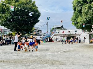 さあ、いよいよ「かけっこ」・「遊戯」・「親子玉入れ」・「リレー」などが始まりました。練習の成果を発揮しようと真剣な表情で走るお友だち。転んでしまっても自分で立ち上がり、ゴールを目指して走る姿は、感動しました。お友だちや先生達と笑顔で踊ったり、応援したりと楽しい時間はあっという間でしたね。