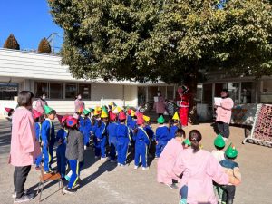 「今日は、サンタさんにお願いされてみんなのところに遊びに来たよ!」と、お手伝いサンタさんが登場!!
