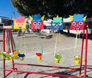 最後は、みんな仲良しに。鬼たちも一緒にみんなで「鬼のパンツ」の曲に合わせて踊りました!!