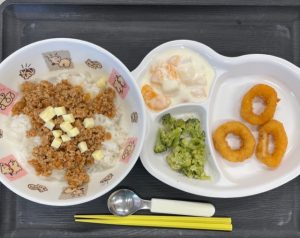 タコライス・チキンリング・ブロッコリーサラダ・フルーツヨーグルト