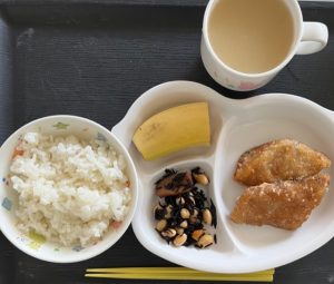 ごはん・鰆の竜田揚げ・ひじき煮・みそ汁・バナナ