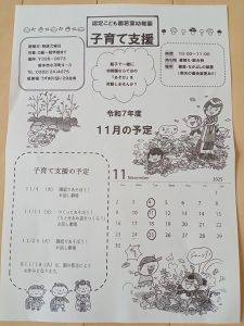 認定こども園 若葉幼稚園の親子体験保育、11月の予定をお知らせします。